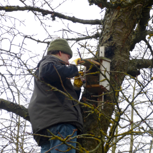 Die Nistkästen-AG hat Anfang 2019 wieder die Nistkästen geräumt und gesäubert. Die Kästen für die Halbhöhlen-Brüter sind auch 2018 wieder ausnahmslos nicht angenommen worden, die für die Höhlenbrüter waren zu ca. 60 % belegt.