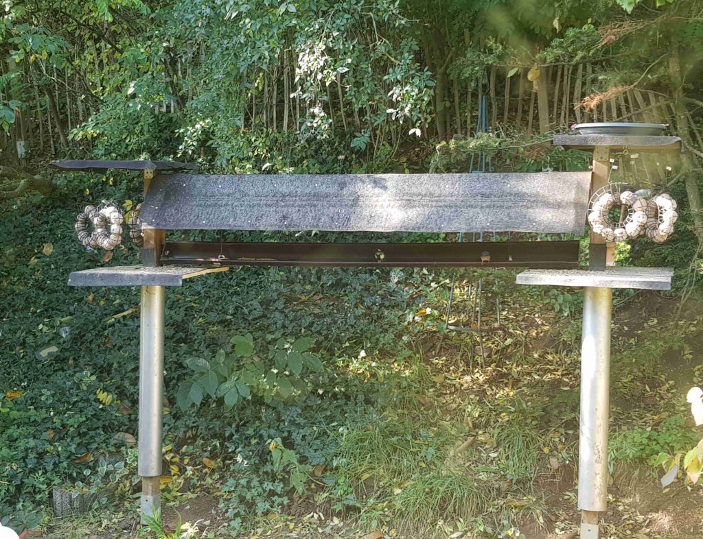 Mein Einstieg in die Ganzjahresfütterung begann klassisch mit dem Futterhaus auf einem Dreibein-Ständer. Dieses wurde jedoch „Opfer“ nächtlicher Randalierer (Waschbär, dazu aber später mehr).